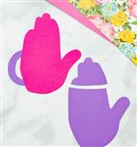 1. For the teapot, trace the child’s hand on pink paper with the fingers together and the thumb sticking out.