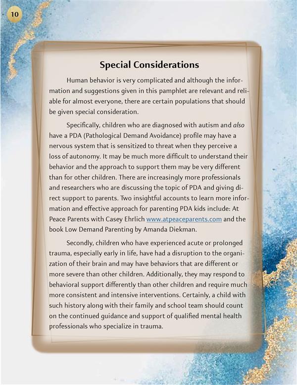 I have written a pamphlet on essential information for parents and caregivers when supporting young children when they have difficult behavior. It is a summary with many cited resources to find further information. You can read the content below or click here for a downloadabe PDF. Parent Behavior Guide